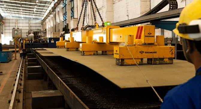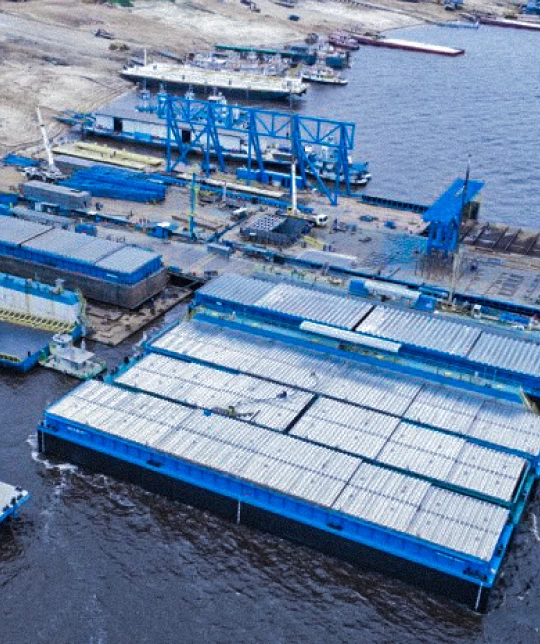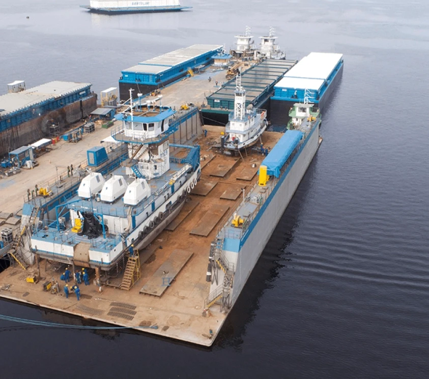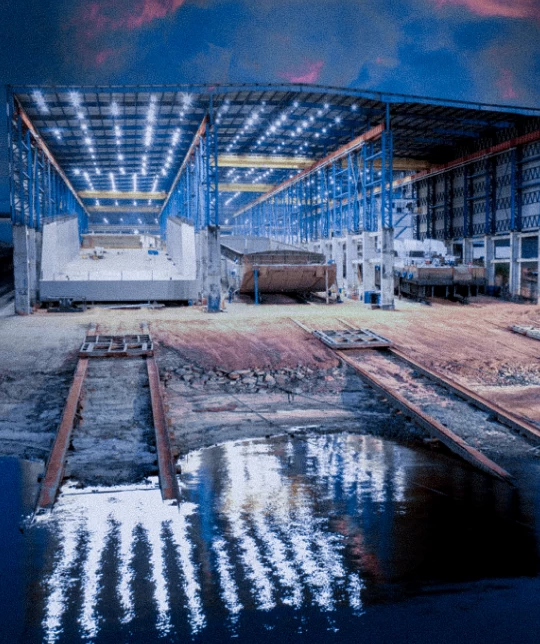 Com uma das maiores infraestruturas navais da região, garantimos eficiência e agilidade na entrega. Contamos com um píer de acabamento e três diques para reparo, além de carreiras de lançamento com capacidade de içamento de 100 toneladas. Nosso processamento de aço utiliza corte numérico computadorizado a plasma, com equipamentos de alta precisão e capacidade de 1.700 toneladas/mês, garantindo qualidade e rapidez na produção.