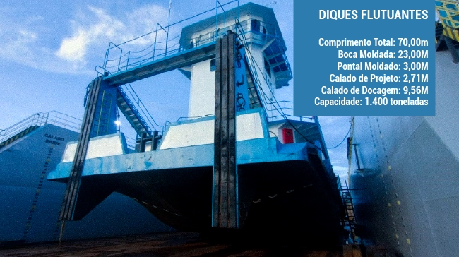 Projetados para oferecer estabilidade superior durante operações de manutenção, os diques flutuantes possuem mecanismos que asseguram facilidade de manobra e posicionamento.